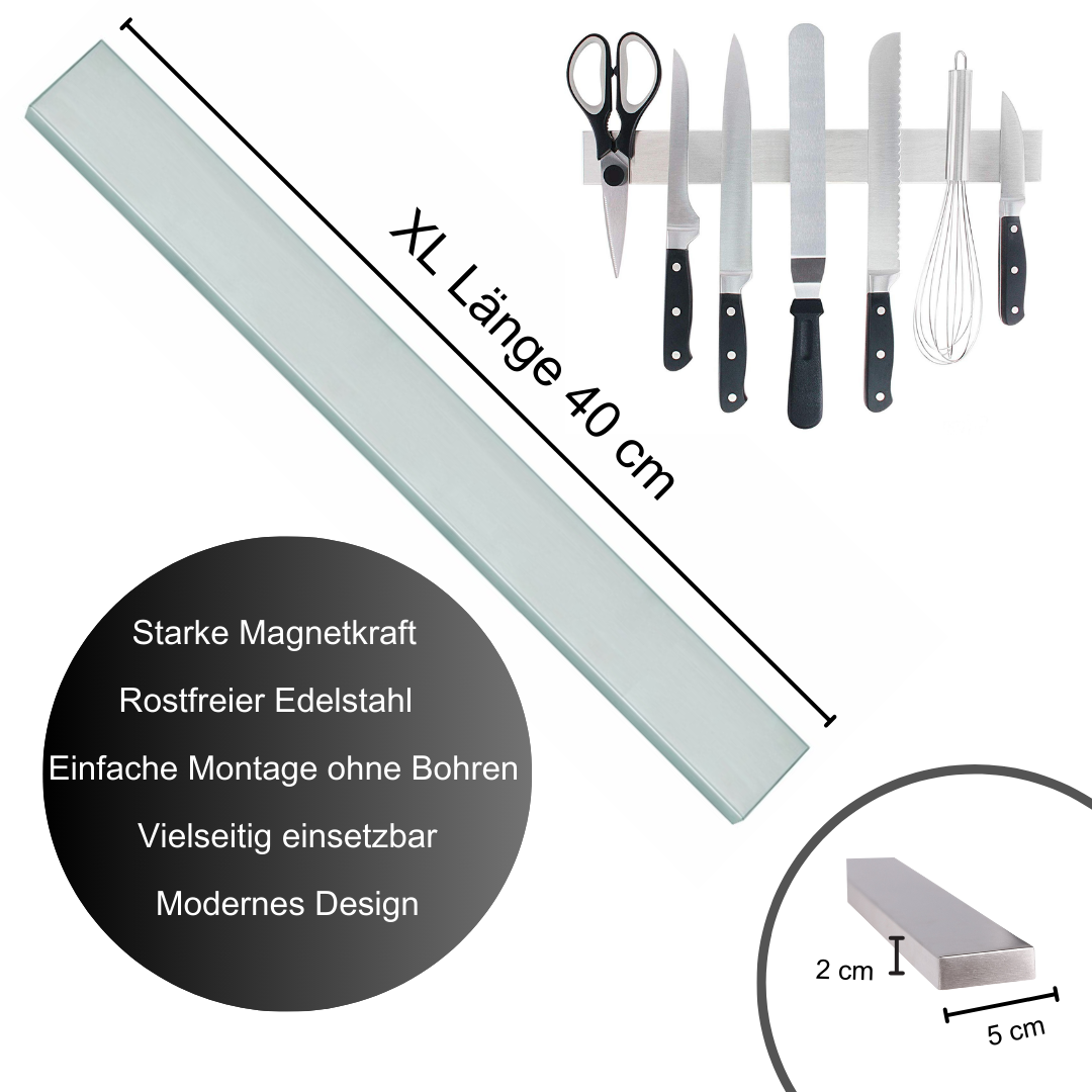 Messerleiste LEILA aus Edelstahl ohne Bohren mit extra starken Magneten, 40 cm lang