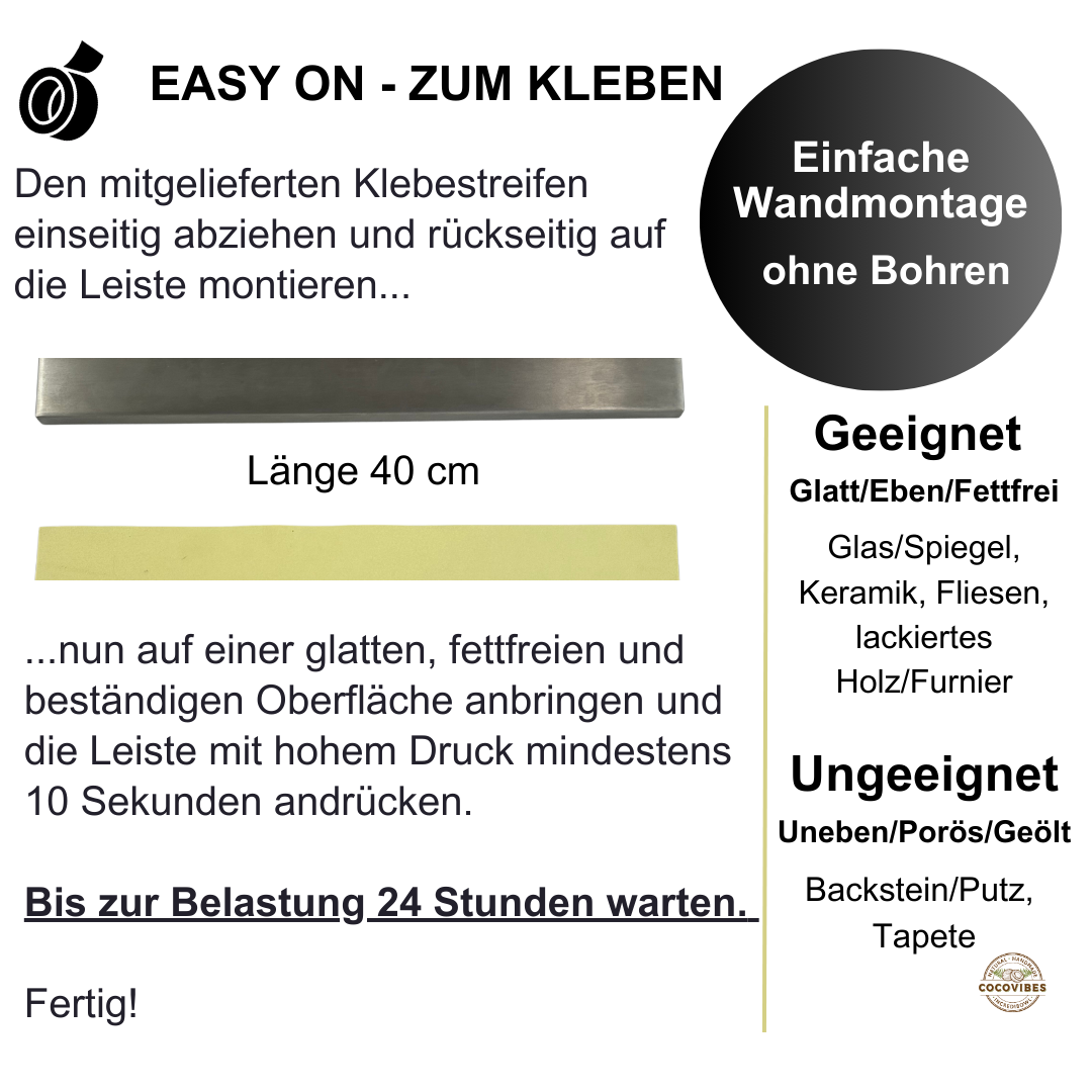 5 Rezensionen für Messerleiste LEILA aus Edelstahl ohne Bohren mit extra starken Magneten, 40 cm lang